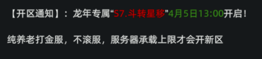 传奇3D版【开区通知】龙年专属“S7.斗转星移”4月5日13:00开启